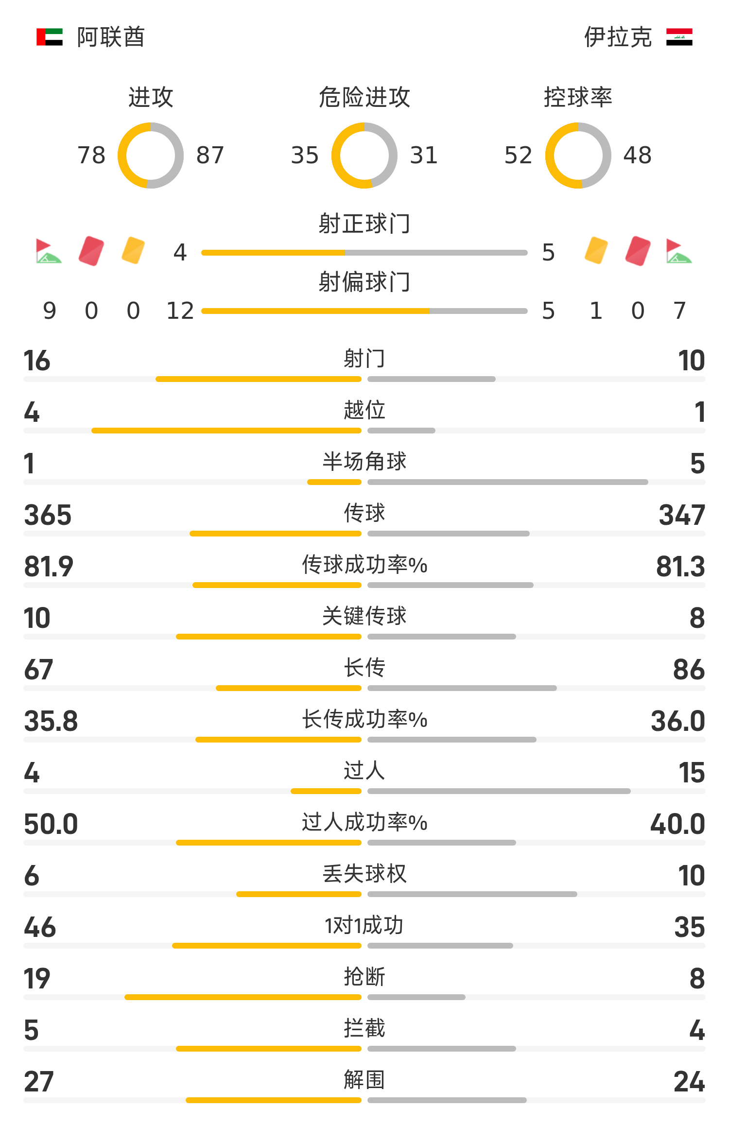 รายชื่อผู้เล่นตัวจริงของยูเออี: 1-ฮูซานี, 22-แม็คเคย์บัลลี, 19-เอบราฮิม, 4-ออตเทิร์น, 13-ราบี, 12-อัลวาเรซ, 18-อัลเมอร์ซี, 10-ลูคัส, 11-คาเนโด, 7- ซาเลห์, 21-บรูโน, 8-อคอนโน