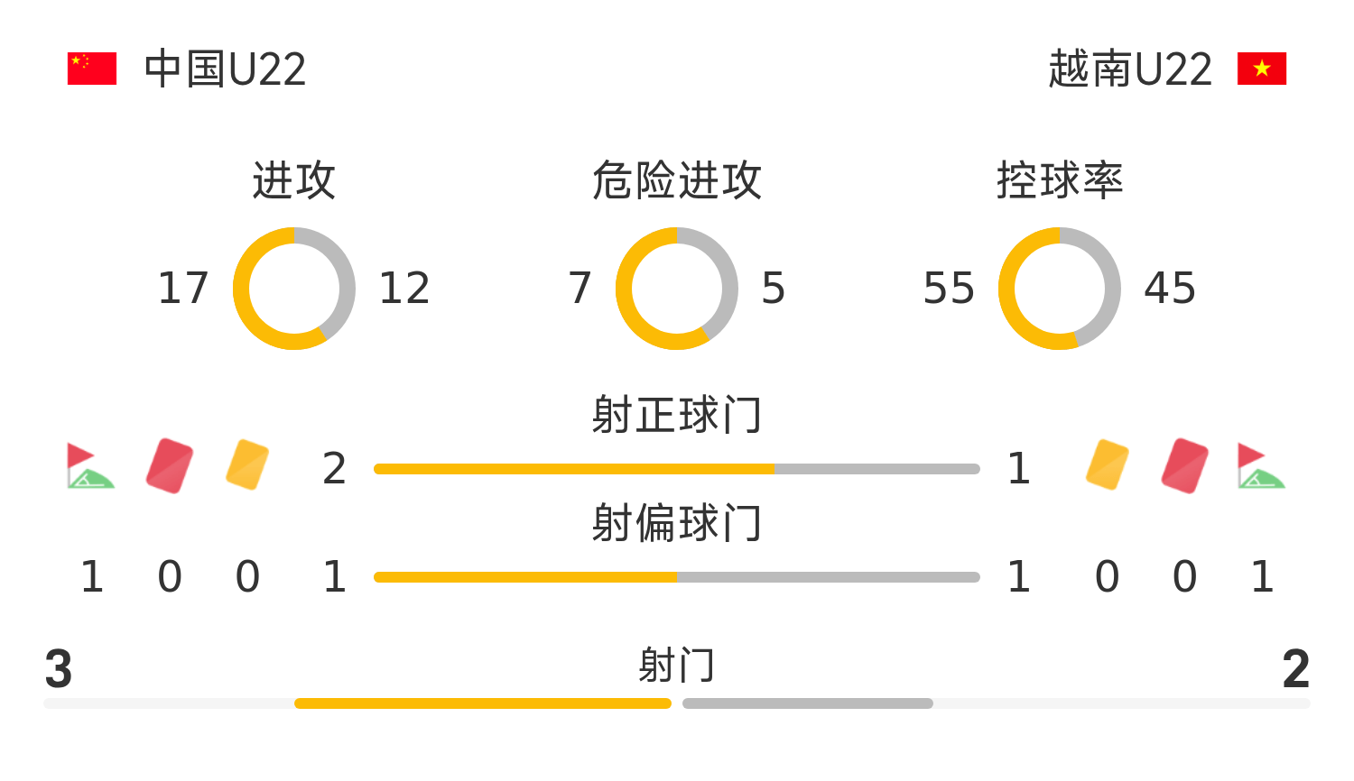 เวียดนาม U22 รายชื่อตัวจริง: 23-เกา เหวินผิง, 4-เหงียน เสี่ยวหมิง, 20-วู หยิงฉวน, 16-เหงียน ริมมิง, 3-ฟาน ไลด์, 12-เหงียน ชุนเป่ย, 8-เหงียน หวันหรง, 11-คู เหวินคัง, 18-เหงียน กงฟาง, 22-เหงียน ชิงเซียน, 9-เหงียน ก๊วยเยว่