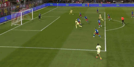 18’ บร็อดเฮดกระแทกข้ามโซนสามวินาที เจมส์ยิงจากมุมโค้ง และผู้รักษาประตูเซฟไว้ได้