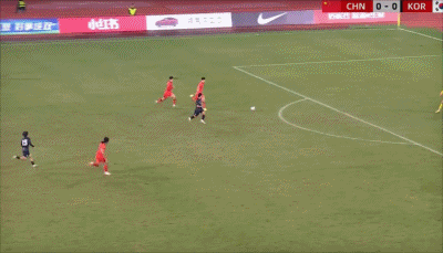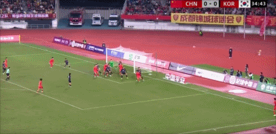 ทีมจีนเตะข้างสนามที่นาที 35' จากนั้นโหม่งในพื้นที่สามวินาทีก็ถูกผู้รักษาประตูยึด
