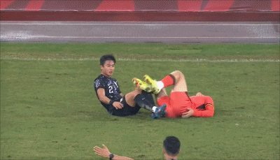 80' เฉิน เจ๋อซือ เคลื่อนไหวเพิ่มเติมหลังจากล้มลงกับพื้น และผู้ตัดสินได้ออกใบเตือน