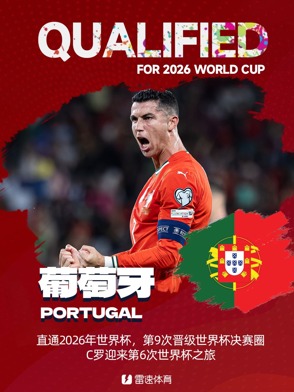 6686 ข่าวกีฬา วันที่ 16 พฤศจิกายน ตามเวลาปักกิ่ง วันนี้ โปรตุเกสเอาชนะอาร์เมเนีย และได้ผ่านเข้าสู่ฟุตบอลโลกปี 2026 ได้สำเร็จด้วยอันดับที่ 1 ในกลุ่ม F โปรตุเกสยังเป็นทีมที่ 4 รอบคัดเลือกของยุโรปสำหรับฟุตบอลโลกและเป็นทีมที่ 31 ของโลกที่ผ่านเข้ารอบ