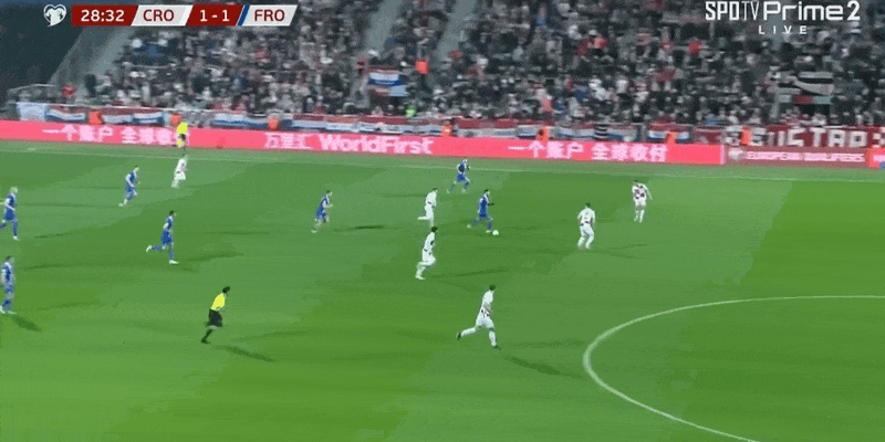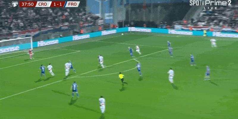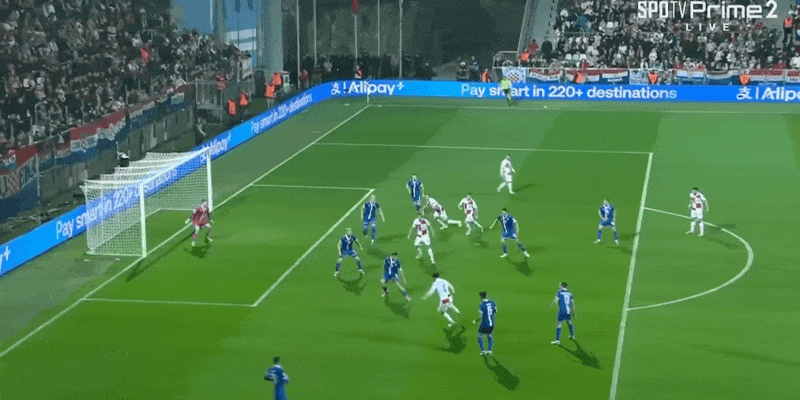 52' สตานิซิชจ่ายบอล บอลเข้าเขตโทษแล้วโหม่งของครามาริชเด้งออกเล็กน้อย