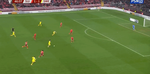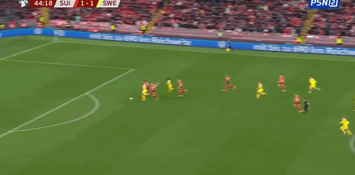 47' สวอนเบิร์กเลี้ยงบอลทะลุบอลแล้วผู้รักษาประตูก็ได้บอลโดยตรง