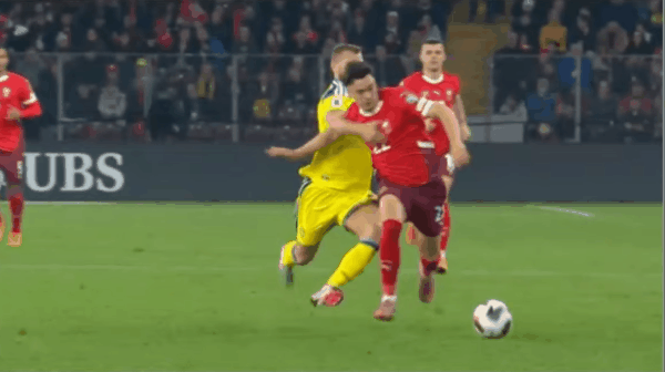 63’ คือความกว้างของเส้นผม! เตะข้างสนามสวิสถูกนำเข้าสู่โซนสามวินาที ก่อให้เกิดการรุกอย่างต่อเนื่อง