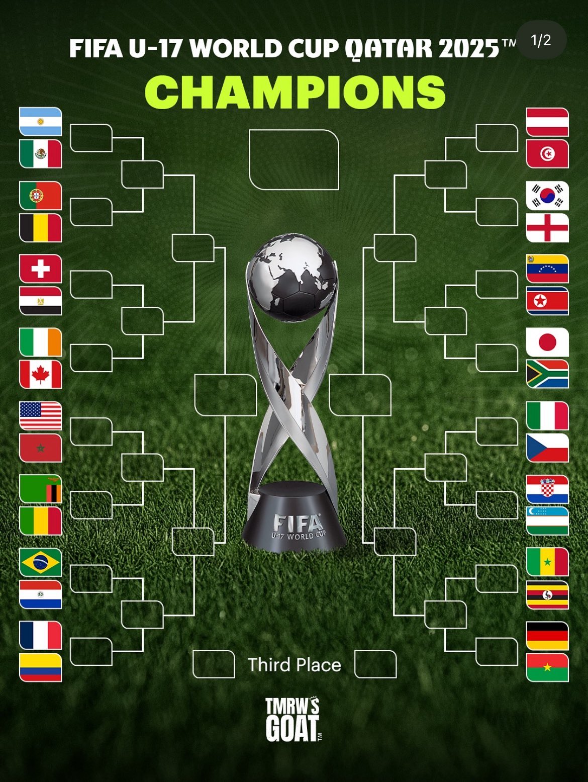 6686 ข่าวกีฬาวันที่ 12 พฤศจิกายน ฟุตบอลโลกชาย U17 ประจำปี 2025 ที่กาตาร์ได้สรุปการแข่งขันรอบแบ่งกลุ่มแล้ว 32 ทีมจาก 48 ทีมที่เข้าร่วมได้ผ่านเข้าสู่รอบน็อคเอาท์แล้ว ในรอบชิงชนะเลิศ 1/16 อาร์เจนตินาเล่นกับเม็กซิโก โปรตุเกสเล่นกับเบลเยียม เกาหลีใต้เล่นกับอังกฤษ และญี่ปุ่นเล่นกับแอฟริกาใต้