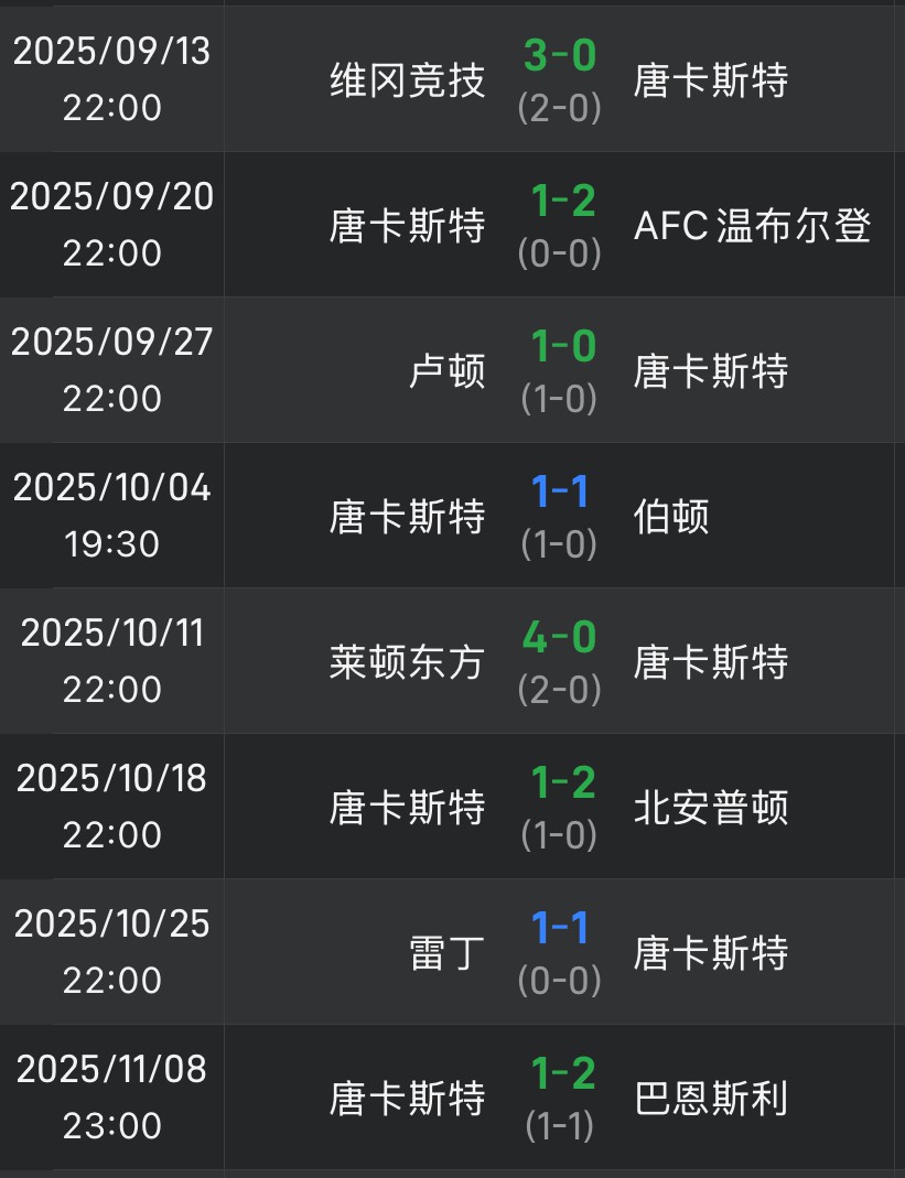 ผลการแข่งขัน 8 นัดหลังสุดของดอนคาสเตอร์