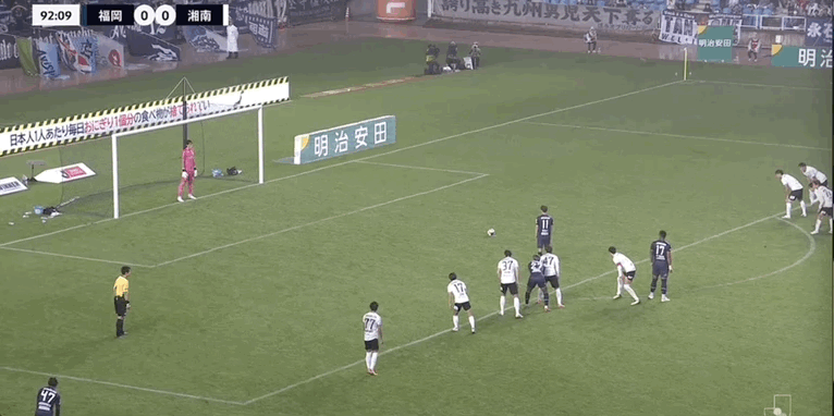 90+3’ เดอะ โชนัน ผู้รักษาประตูชกได้แต้ม มิซึกิ โทโมยะ ยิงจุดโทษ ฟุกุโอกะ 1-0 โชนัน
