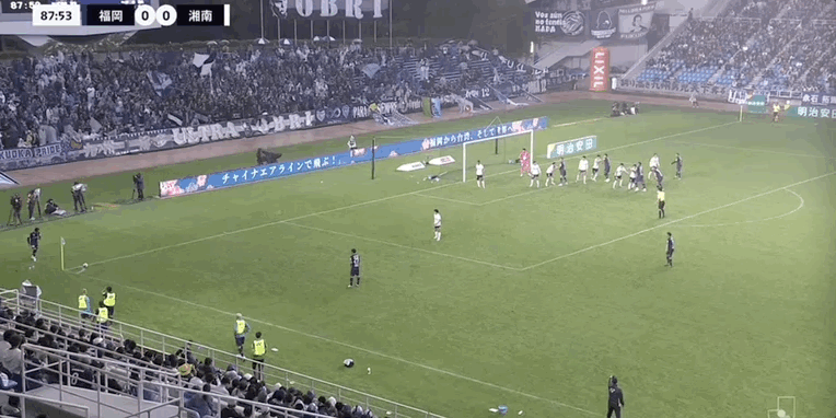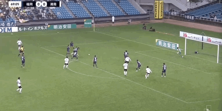 55' ซูซูกิ โชโตะโหม่งบอลในโซนสามวินาที ผู้รักษาประตู ฟุกุโอกะ ยึดบอล