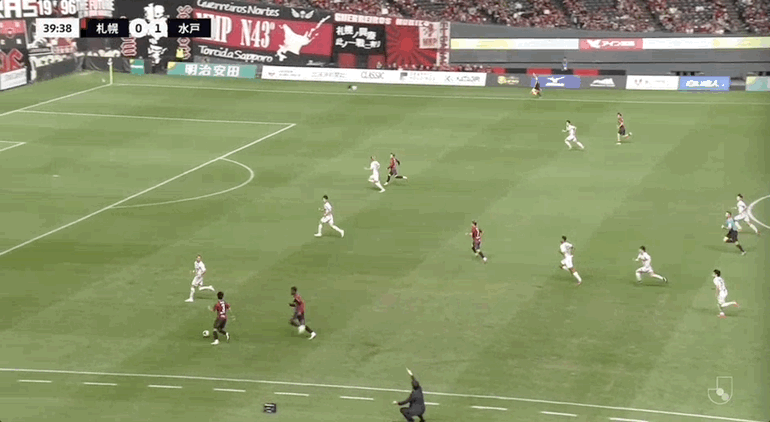 40'การช่วยเหลือจากต่างประเทศของซัปโปโรทำผิดพลาดในการหยุดบอลในโซนสามวินาทีแล้วละเมิดอย่างรุนแรง