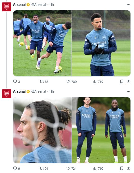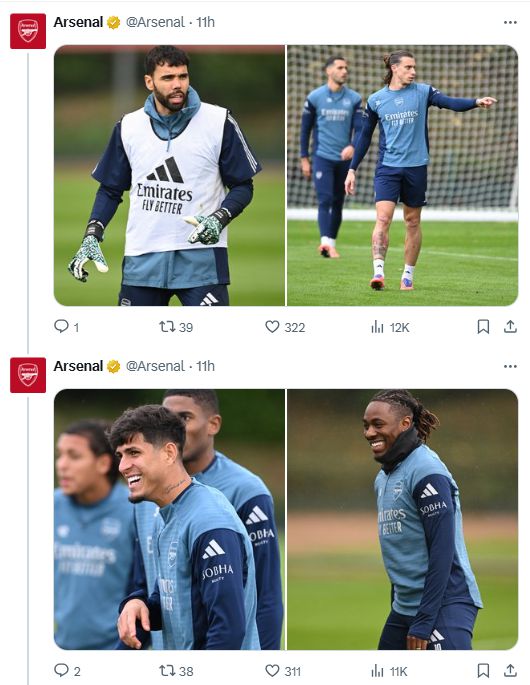 แฟน ๆ ตาเหยี่ยวพบว่าร่างสำคัญที่ซาก้าหายไปจากภาพถ่ายการฝึกซ้อมเหล่านี้ โค้ชอาร์เตต้าเปิดเผยก่อนเกมว่ากาเบรียลได้รับบาดเจ็บ ดังนั้นกาเบรียลจึงไม่รวมอยู่ในภาพการฝึกซ้อม แต่ไม่มีใครพูดถึงสถานการณ์ของซาก้า และการหายตัวไปของเขาทำให้เกิดความกังวลในหมู่แฟนๆ