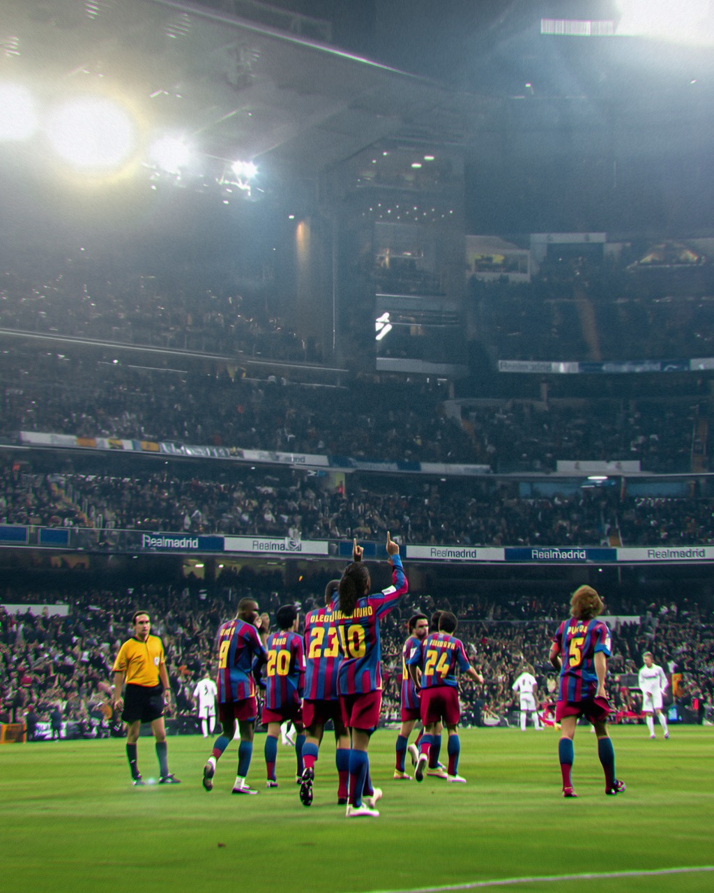 เมื่อวันที่ 19 พฤศจิกายน พ.ศ. 2548 โรนัลดินโญ่ทำประตูสองครั้งในดาร์บี้ระดับประเทศเพื่อช่วยให้บาร์เซโลนาเอาชนะเรอัลมาดริด 3-0 ที่เบร์นาเบว การแสดงอันโดดเด่นของเขาเอาชนะใจแฟนบอลเกือบ 80,000 คนที่สนามเบร์นาบิว และยืนขึ้นเพื่อปรบมือ