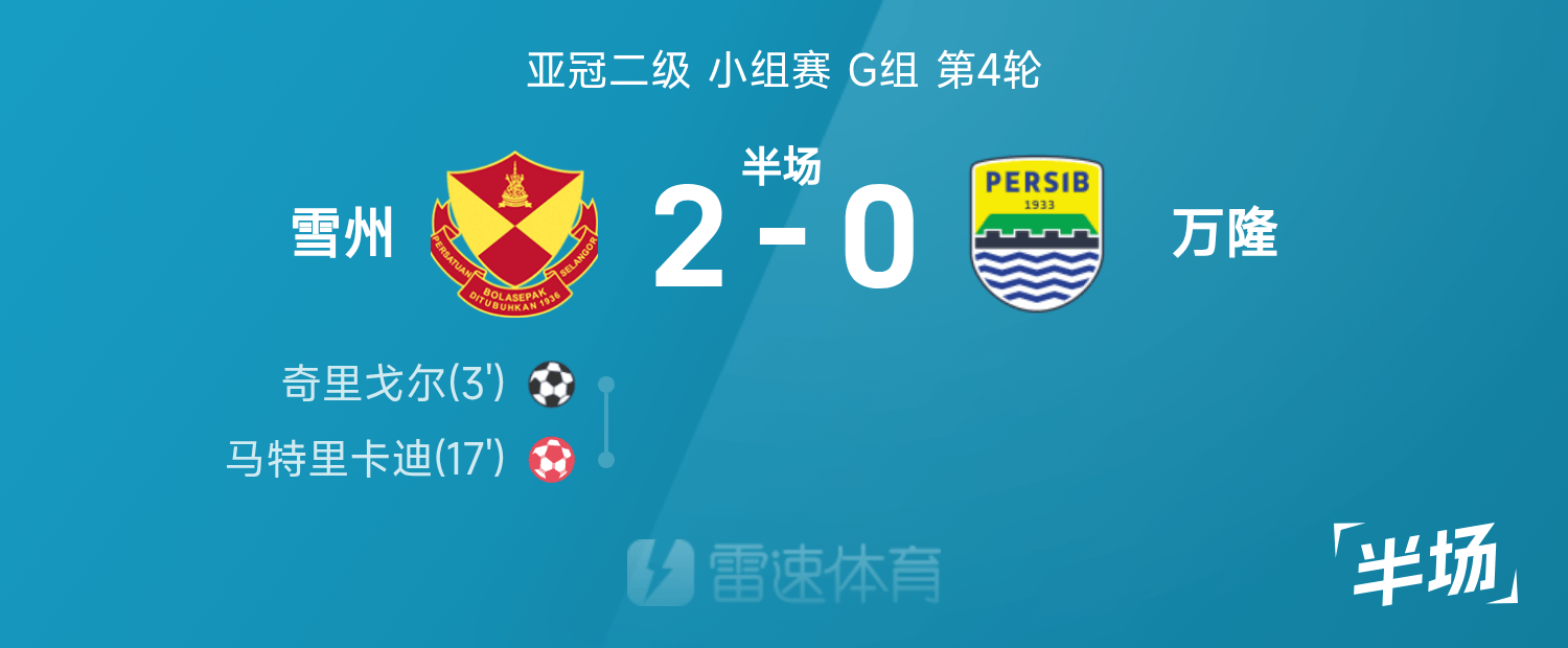 AFC Champions League ระดับ 2 พักครึ่ง: Chirigor ยิงแบบสายฟ้าแลบ, Selangor 2-0 บันดุง