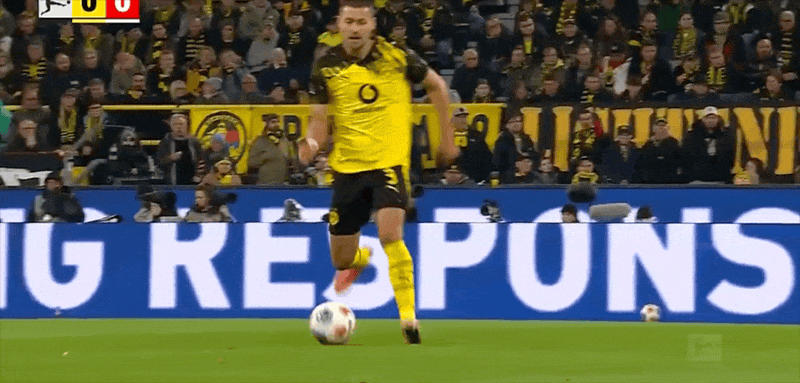 10' บอลแนวหน้าของดอร์ทมุนด์ทำให้เกิดความสับสนวุ่นวาย แอนตันผลักมุมไกลจากระยะใกล้และถูกสกัดกั้นจากท้ายเกม line