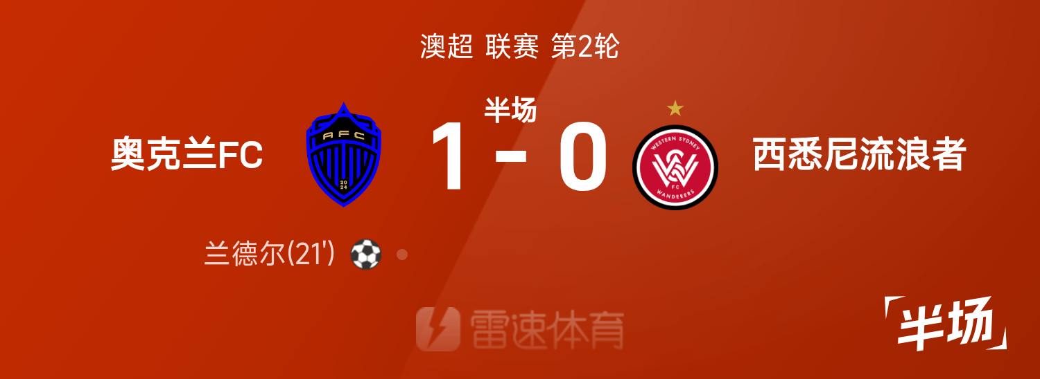 พักครึ่งเวลาของออสเตรเลียน ซูเปอร์ลีก: แรนดัลล์ทำประตูจากนอก โอ๊คแลนด์เฉือนเวสต์เทิร์น ซิดนีย์ วันเดอเรอร์ส 1-0 ชั่วคราว