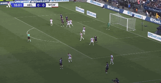 26’ ผู้รักษาประตูโอ๊คแลนด์ตีออกทันเวลาและช่วยทีมด้วยการช่วยชีวิตคู่ต่อสู้เพียงลำพัง