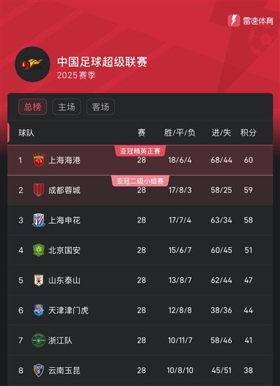 ครึ่งบนของอันดับไชนีส ซูเปอร์ลีก