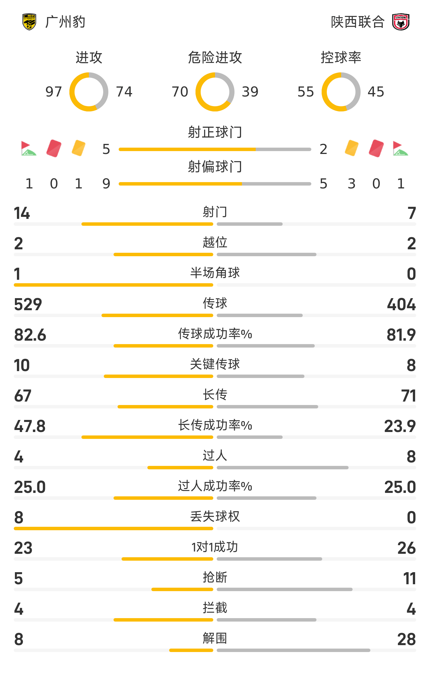 Guangzhou Leopards รายชื่อตัวจริง: 22-Xiao Jiaqi, 5-Jiang Jihong, 3-Han Xuan, 15-Deng Biao (81'42-Yang Hao), 37-Shang Yin (73'14-Zeng Chao), 25-Wang Jianming, 8-ไค ห่าวชาง (น.46'7-คาร์ลอส), 6-ต้วน หยุนซี (90'1) 7-ยาน ซีห่าว), 11-นิคอน, 20-โรซ่า, 9-เซีย ต้าหลง (73'10-เหลียง เสวี่ยหมิง)