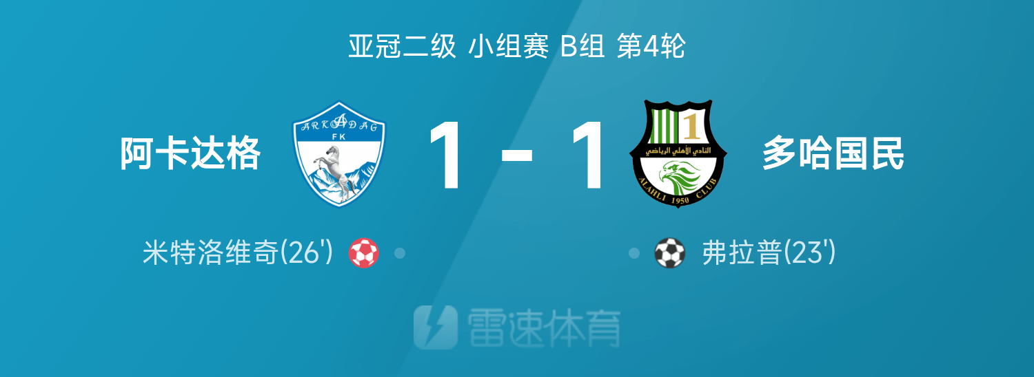 6686 ข่าวกีฬาในวันที่ 5 พฤศจิกายน ซึ่งเป็นรอบที่ 4 ของกลุ่ม B ของการแข่งขันรอบสองกลุ่ม AFC Champions League 25/26 ระหว่าง Akadaq กับ Doha Nationals ในครึ่งแรก แฟรปป์ทำประตูได้ และมิโตรวิชทำเข้าประตูตัวเอง ในครึ่งหลังทั้งสองฝ่ายไม่ได้อะไรเลย ท้ายที่สุด Akadag เสมอ 1-1 กับ Doha Nationals