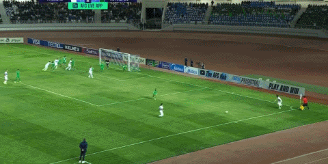 78' Atayev จ่ายบอลเฉียดๆ เพื่อหาเพื่อนร่วมทีมที่จุดสูงสุดของโค้ง และบอลก็จ่ายตรงไปยังเส้นข้างไกล