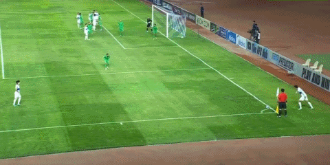 67’ ผู้รักษาประตูทีมชาติโดฮาจ่ายบอลพลาดในเขตโทษและได้บอลคืนหน้าเส้นประตูที่สองอย่างน่าตื่นเต้น