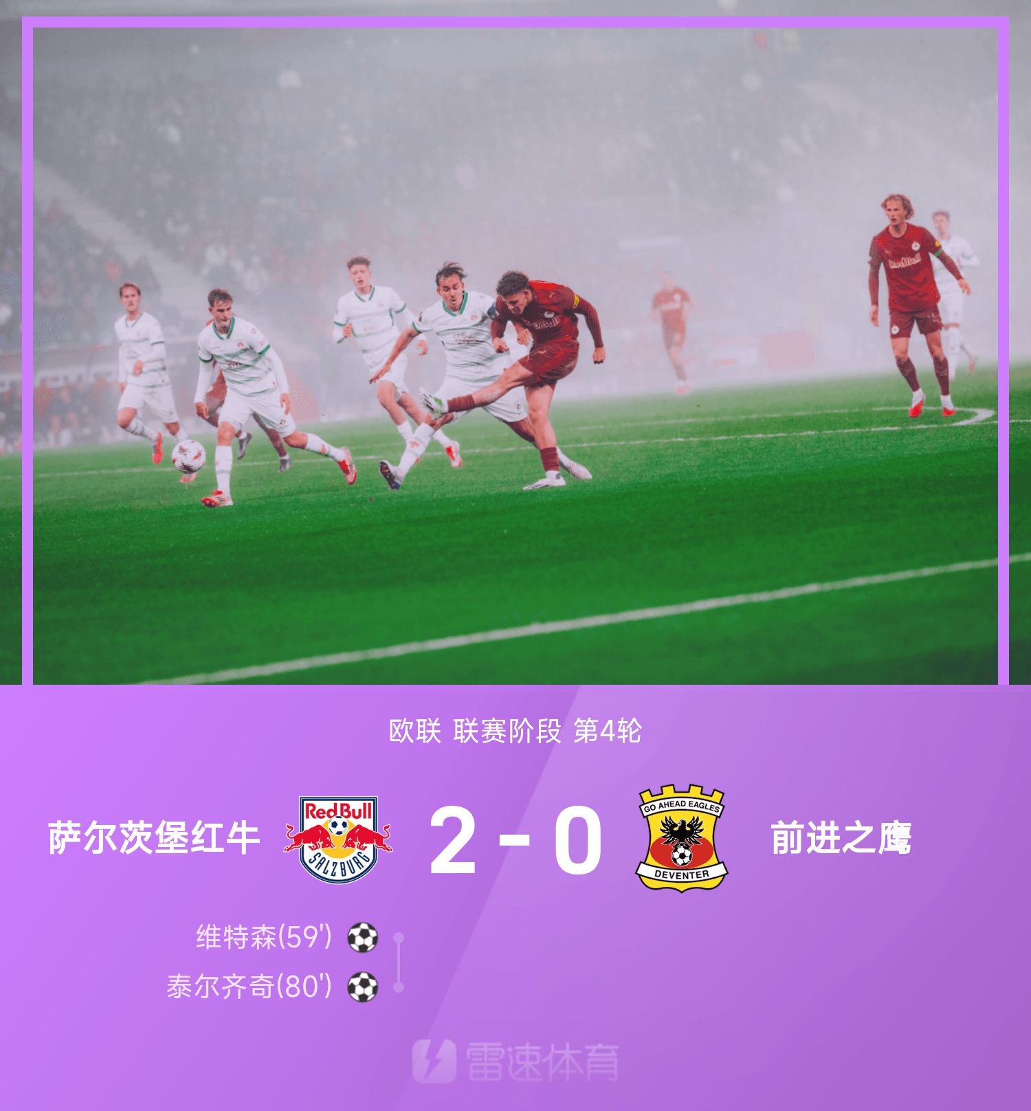6686 Sports News เมื่อวันที่ 7 พฤศจิกายน ในรอบที่สี่ของยูโรปาลีก 25/26 ซัลซ์บวร์ก เรดบูลล์เผชิญหน้ากับแอดวานซ์ อีเกิลส์ ครึ่งแรกทั้งสองทีมแลกกันรุกและรับ ซัลซ์บวร์ก เร้ดบูลล์อาศัยลูกตั้งเตะและลูกยิงนอกเพื่อคุกคามประตูของคู่ต่อสู้ นาทีที่ 59 ของครึ่งหลัง แตร์ซิช ส่งบอลเข้าเขตโทษ วิทสัน ยิงประตู และ เร้ดบูลล์ ซัลซ์บวร์ก สกัดบอลเข้าไปทางเขตโทษ นาทีที่ 80 แตร์ซิชทำประตูสุดสวยให้เร้ดบูลล์ ซัลซ์บวร์กขึ้นนำ 2-0 หลังจากนั้นทั้งสองทีมไม่สามารถเปลี่ยนสกอร์ได้ สุดท้าย เร้ดบูลล์ ซัลซ์บวร์ก เอาชนะ แอดวานซ์ อีเกิ้ล 2-0 ที่สนามของเจ้าบ้าน