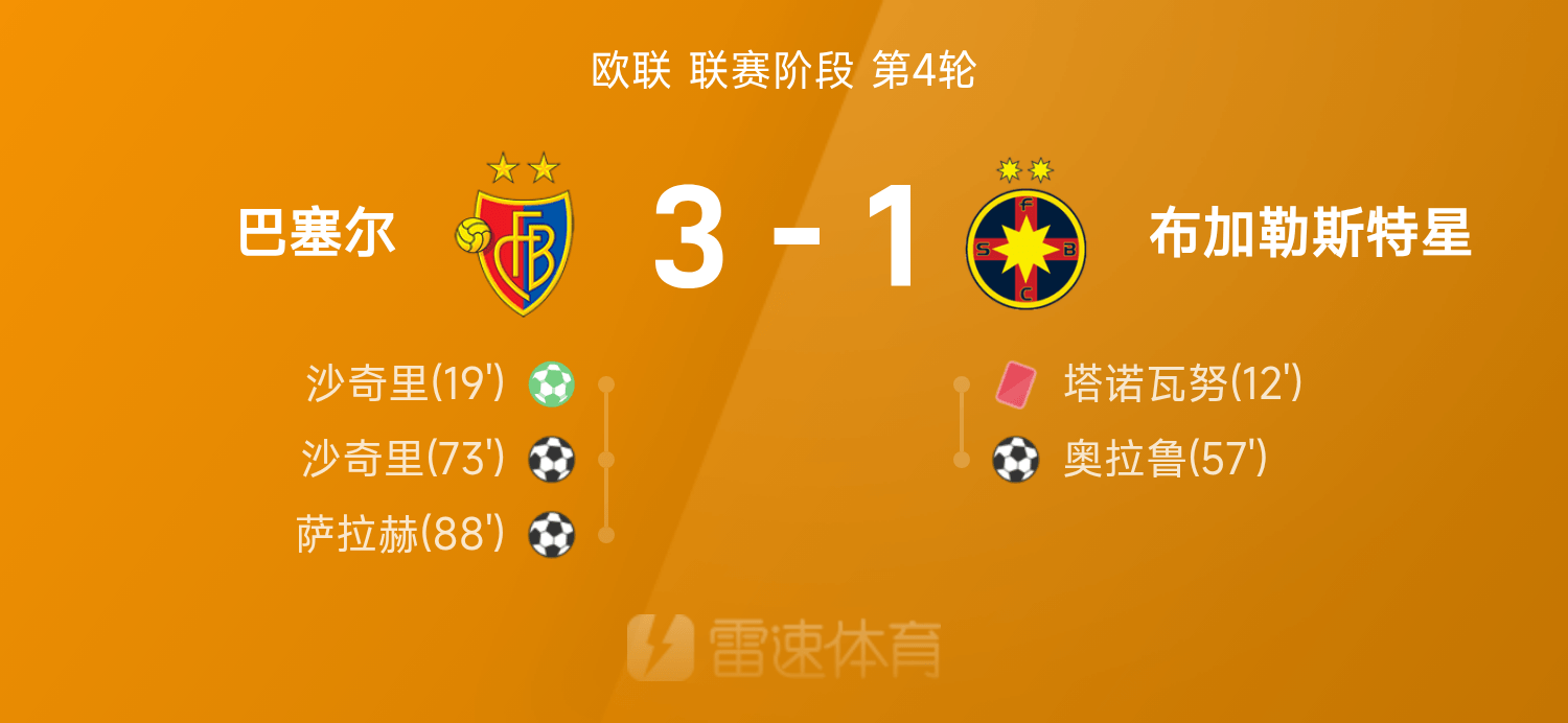 6686 กีฬา 7 พฤศจิกายน ในรอบที่สี่ของยูโรปาลีก 25/26 บาเซิลเอาชนะสเตอัว บูคาเรสต์ 3-1 ตลอดทั้งเกม ชาคิรี ยิงได้ 2 ประตู ซาลาห์ ยิงประตู โอลารู ยิงประตูแต่ไม่สามารถช่วยกอบกู้ได้ และตาโนวานูโดนใบแดง