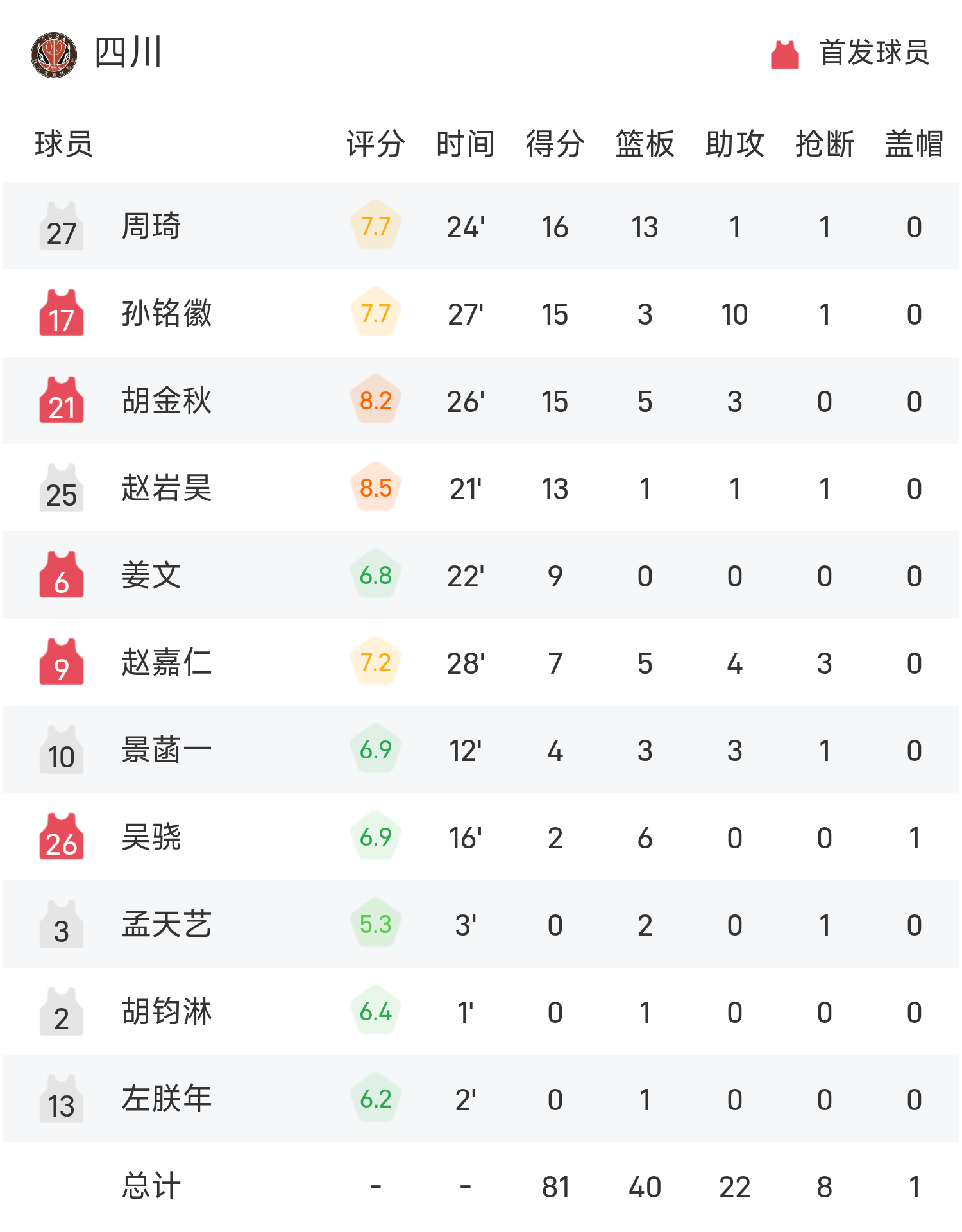 โจว ฉี 16 แต้ม 13 รีบาวด์ 1 แอสซิสต์ พาทีมคว้าชัย หยู เจ๋อเฉินคง ทำคะแนนสูงสุดในเกม 17 แต้ม 2 รีบาวด์ ผู้เล่นรุ่นเก๋า Han Dejun เป็นผู้นำในการเต้นครั้งสุดท้ายและคว้า 16 รีบาวน์