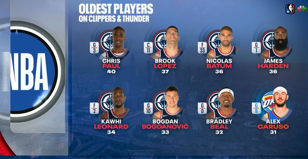 การเปรียบเทียบอายุของผู้เล่น Thunder และ Clippers: ผู้เล่นอายุมากที่สุดเจ็ดอันดับแรกล้วนอยู่ใน Clippers