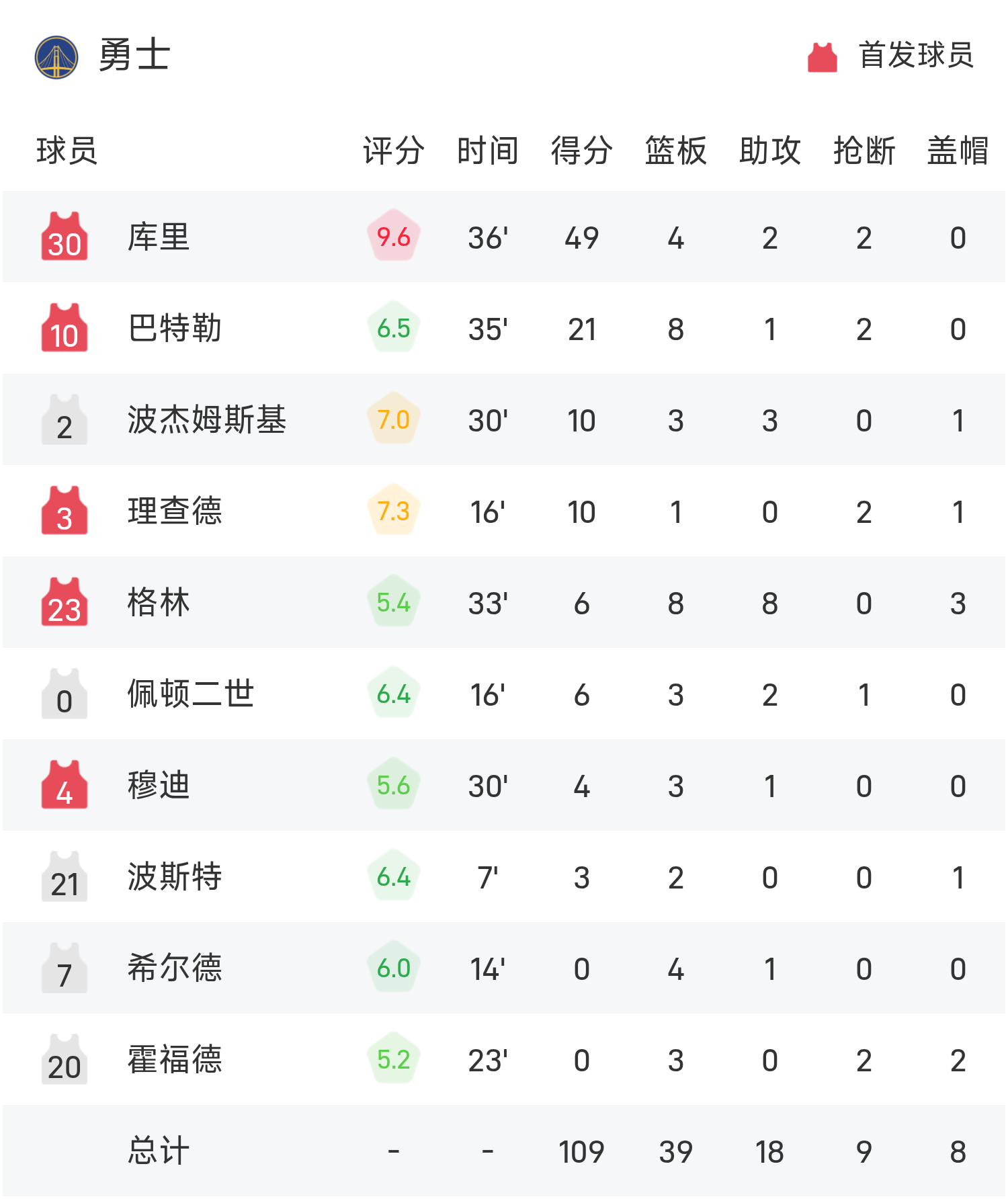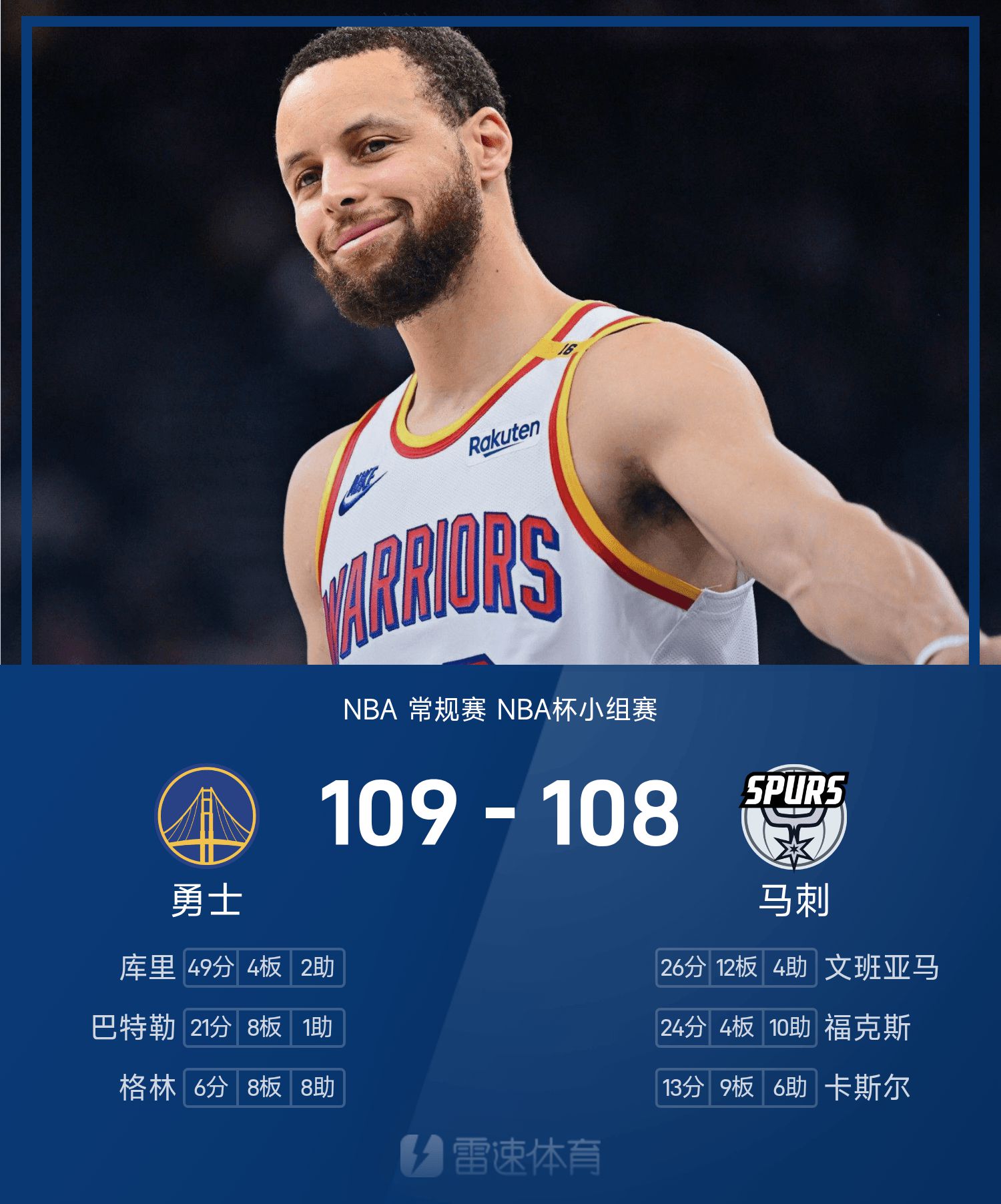 รายงาน NBA Cup: Curry ทำคะแนนสูงสุดในฤดูกาล 49 แต้ม Warriors เอาชนะ Spurs 109-108 อย่างหวุดหวิด