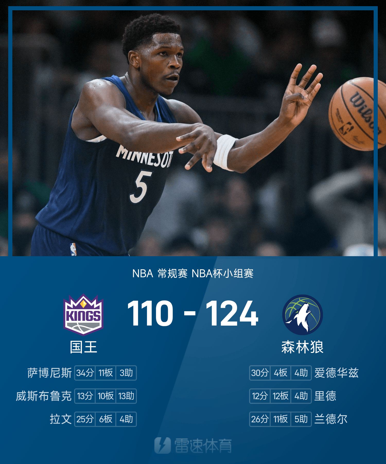 หลังจากที่ทั้งสองฝ่ายต่อสู้กัน Timberwolves เอาชนะ Kings 124-110