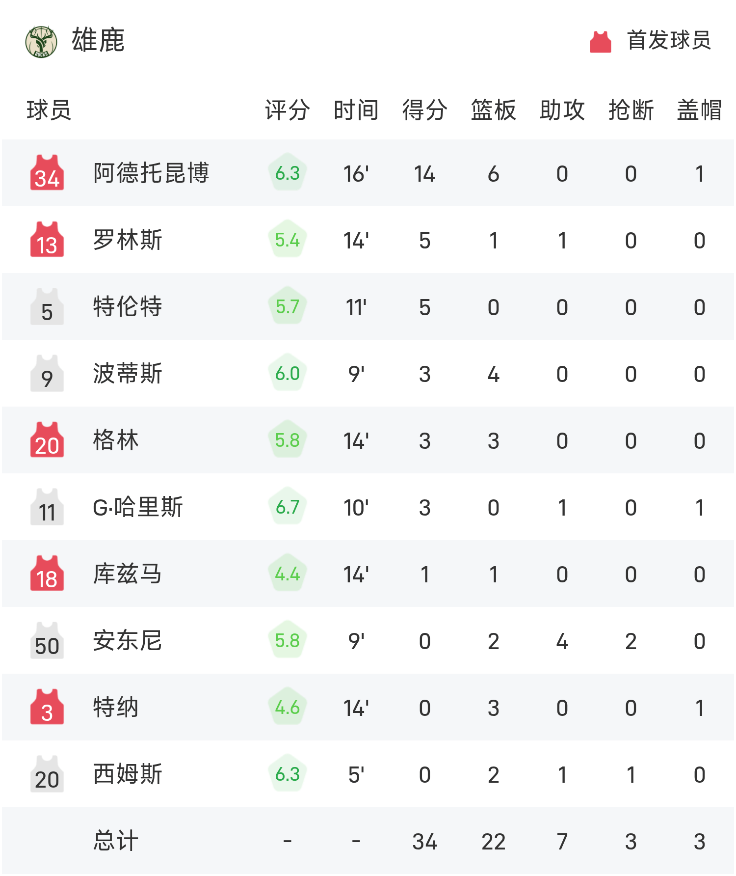 ดอนซิชทำคะแนนสูงสุดในเกม 21 แต้ม 5 รีบาวด์ 5 แอสซิสต์ อันเทโทคูมโปมี 14 แต้มและเสีย 5 แต้ม และคุซมายิง 0 จาก 6 แต้มและทำได้เพียง 1 แต้ม