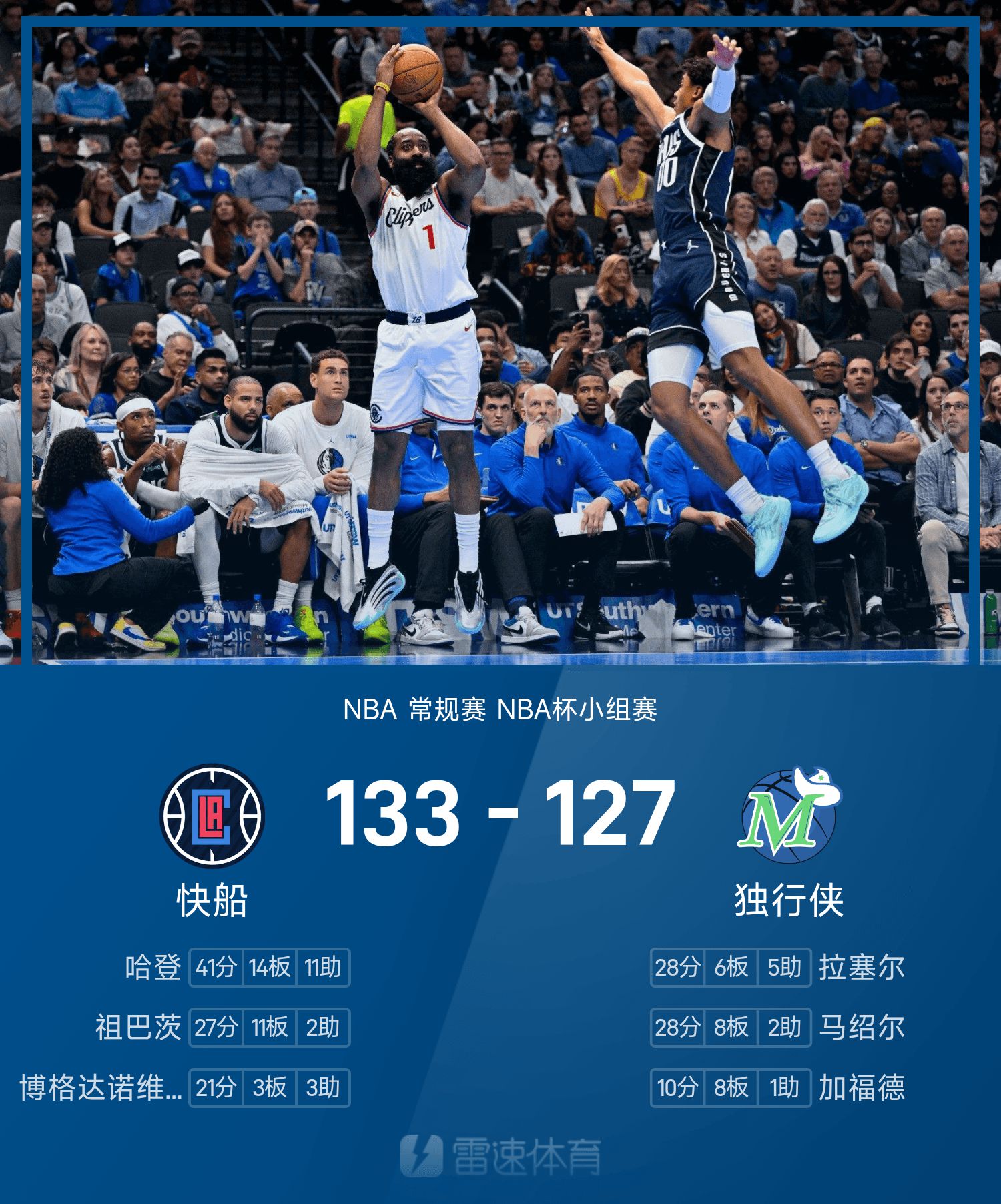 รายงาน NBA Cup: ฮาร์เดน 41 แต้มทริปเปิลดับเบิล คลิปเปอร์สเอาชนะมาเวอริกส์ 133-127 ในช่วงต่อเวลาสองเท่า