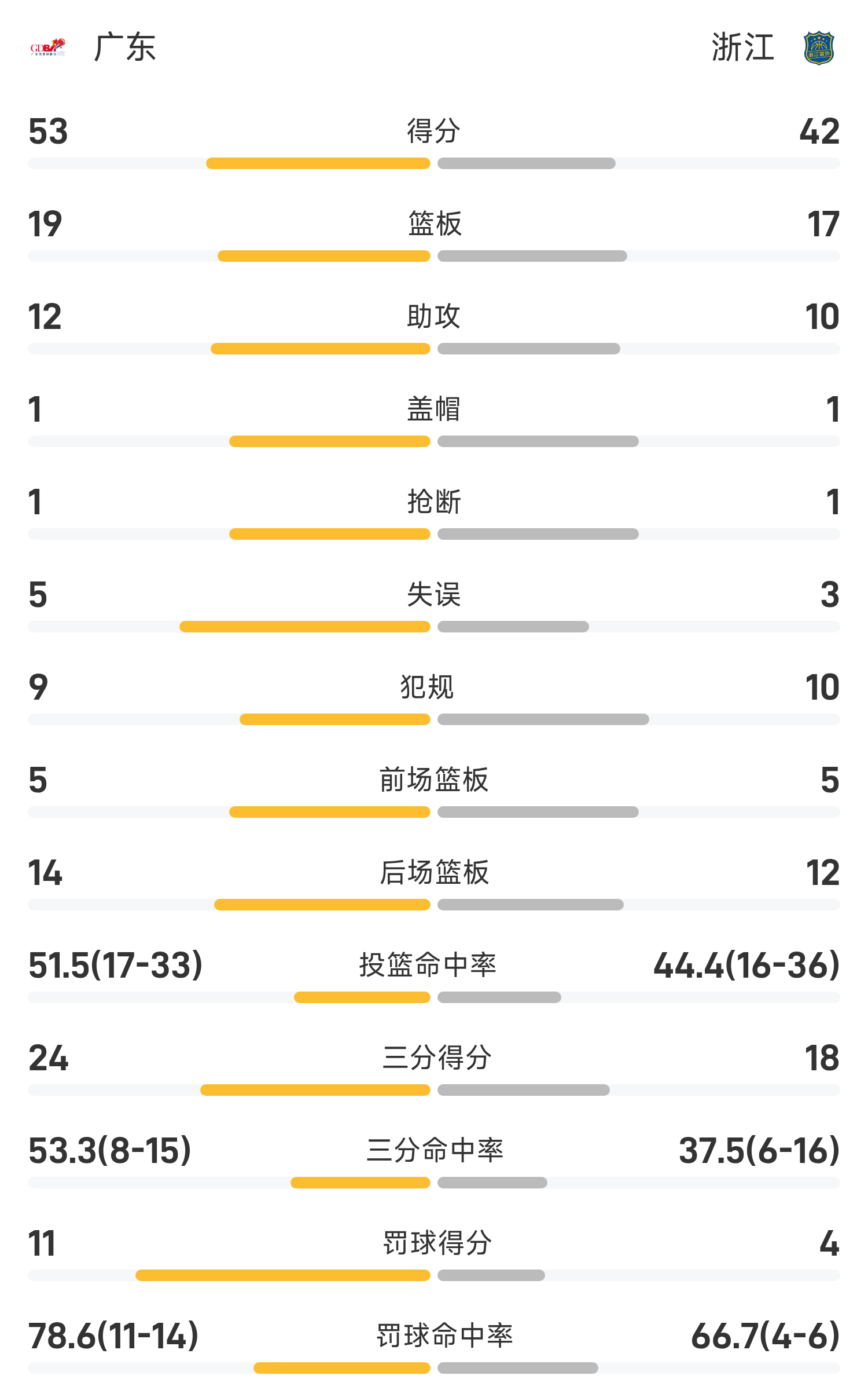 ขณะนี้ทั้งสองฝ่ายอยู่ในช่วงพักครึ่ง โดยเจ้อเจียงนำกว่างตง 42-53