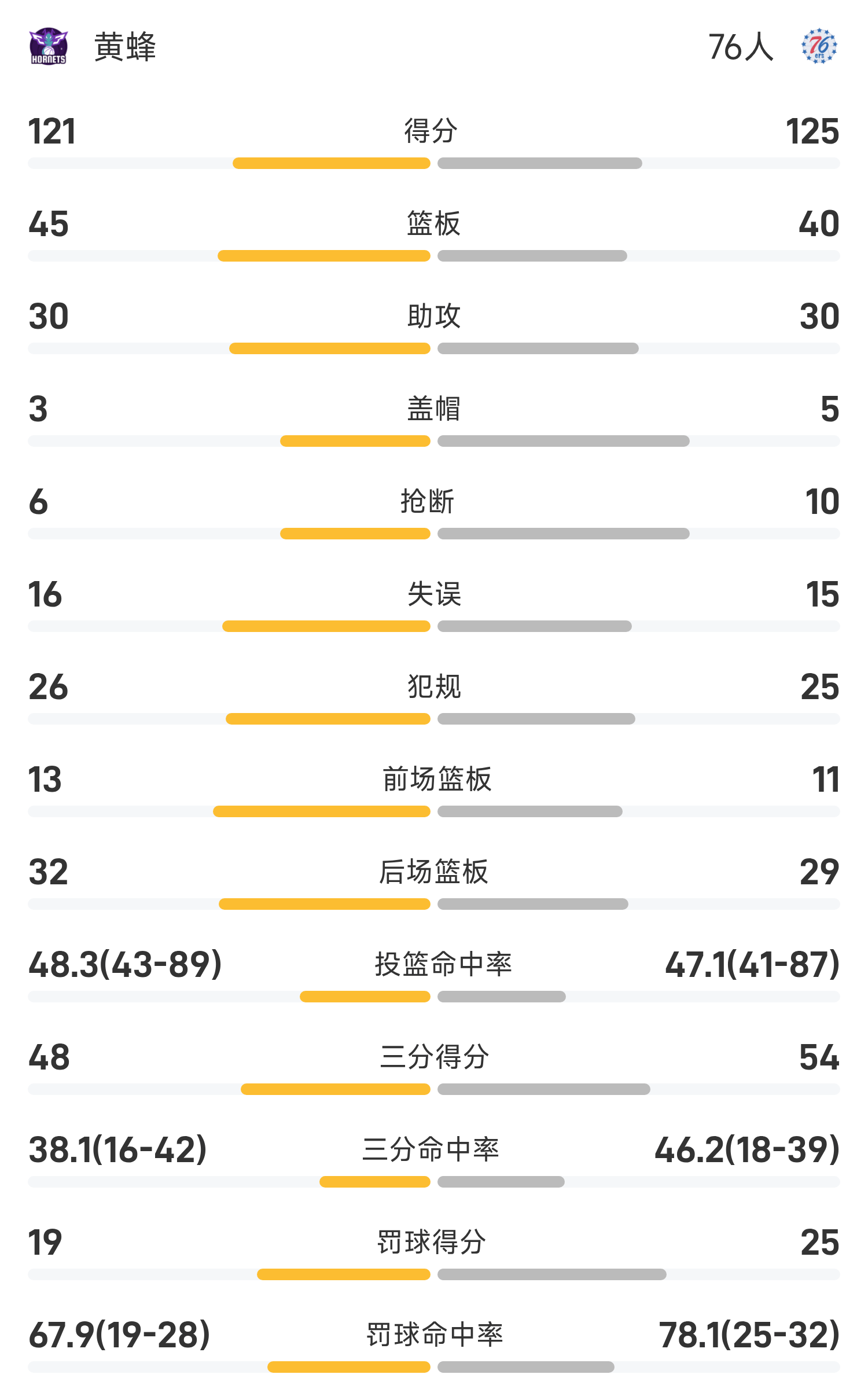 จบเกม 76ers เอาชนะ ฮอร์เน็ตส์ 125-121