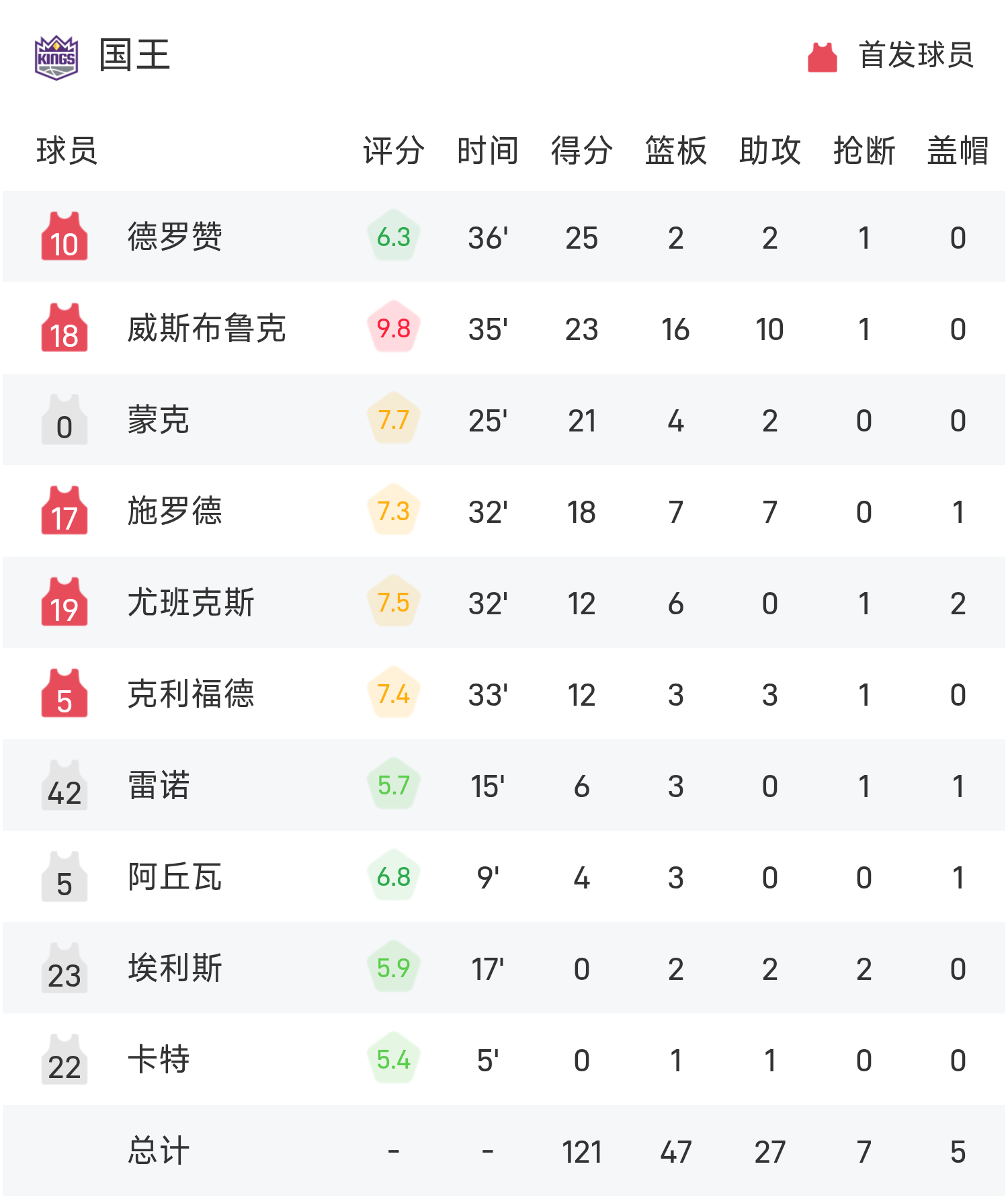เดโรซานทำไป 25 แต้ม 2 รีบาวด์ 2 แอสซิสต์ นำทีมคว้าชัยชนะ ริชาร์ดทำคะแนนสูงสุดในเกม 30 แต้ม 7 รีบาวน์และ 3 แอสซิสต์