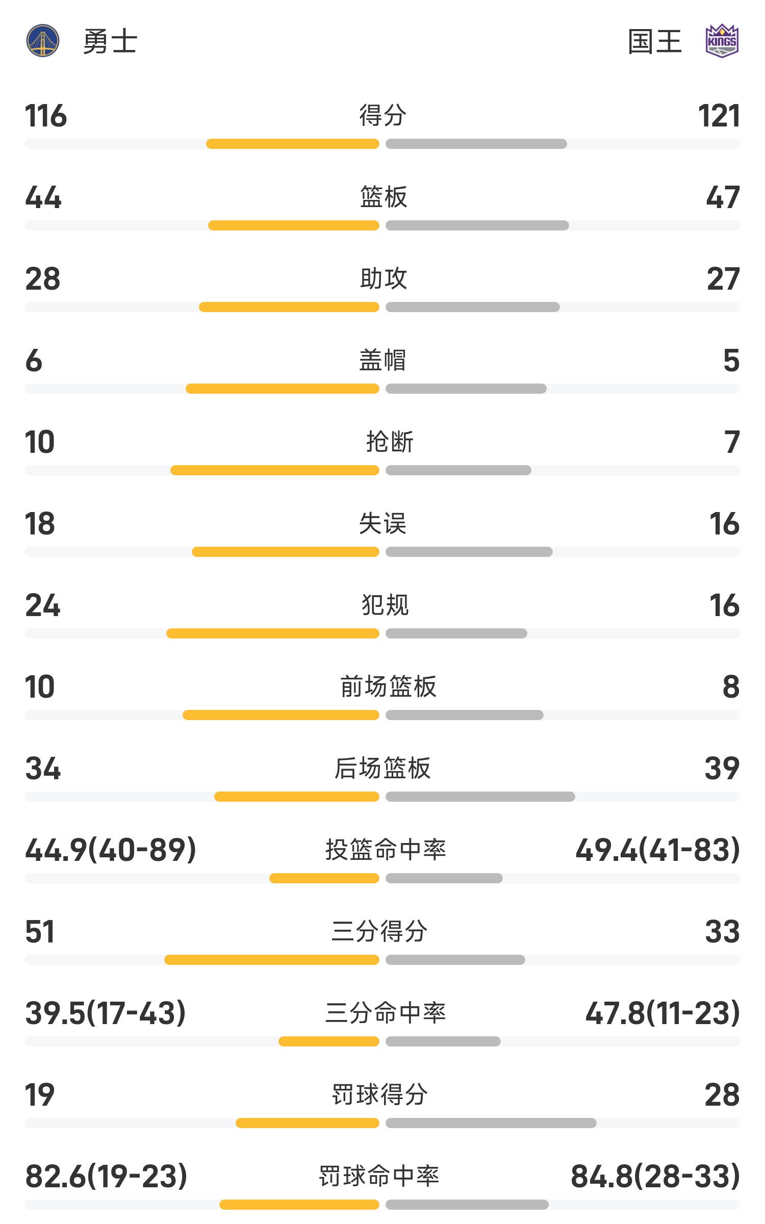 ในตอนท้ายของเกม Kings เอาชนะ Warriors 121-116