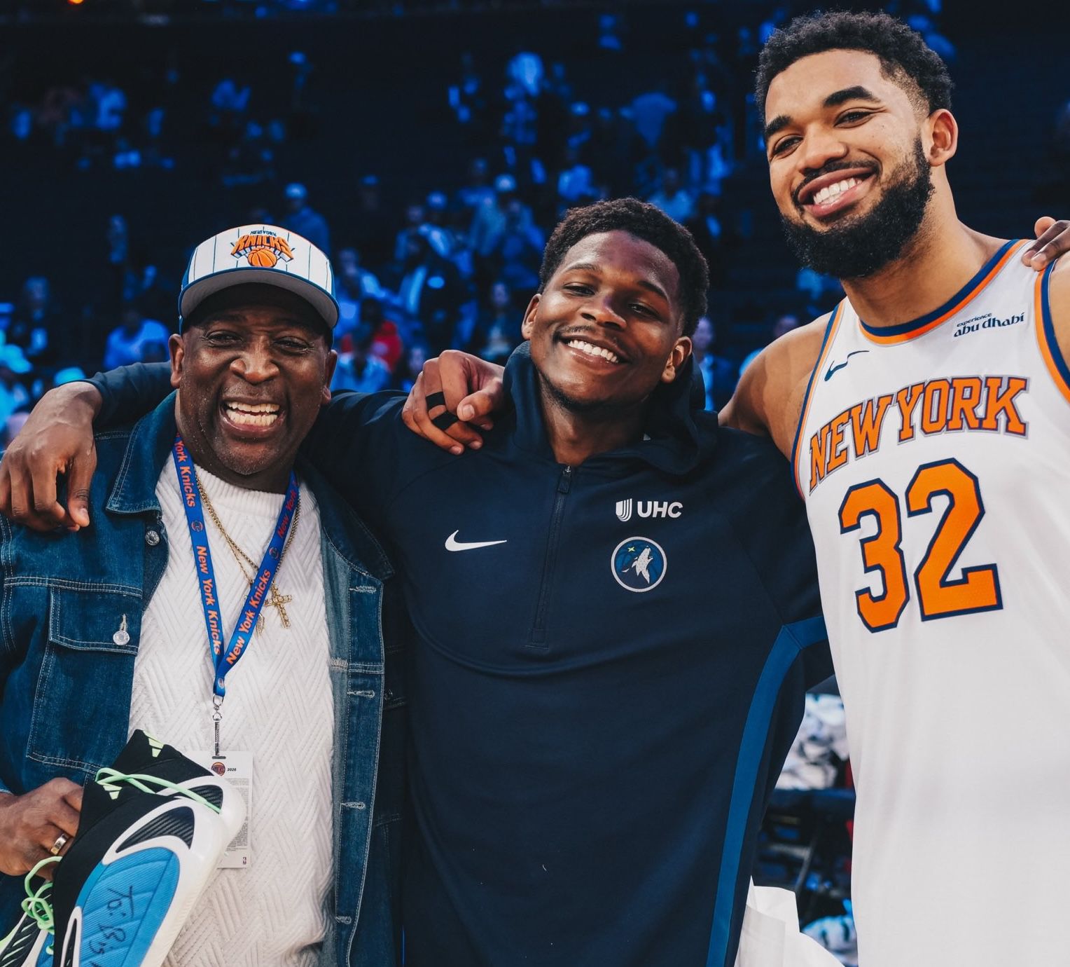 ยังดีอยู่นะพี่น้อง! Edwards ถ่ายรูปกับ Towns และลูกชายของเขาหลังจบเกม และมอบรองเท้าบาสเก็ตบอลพร้อมลายเซ็นให้เขา