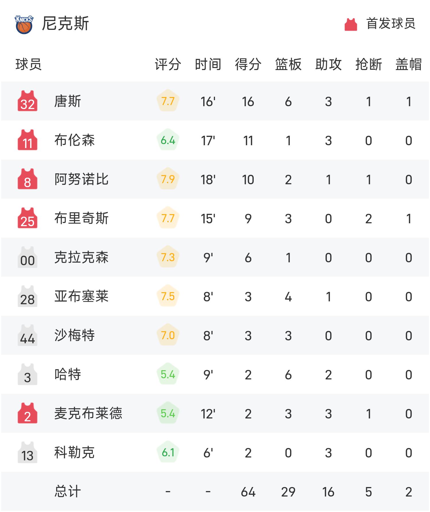 ในควอเตอร์ที่ 2 ของเกม กรีนส์ทำ 6 แต้มใน 8 นาที นิกส์ถล่ม 28-6 พลิกกลับให้สำเร็จ ทาวน์สทำคะแนนสูงสุดในครึ่งหลังด้วย 16 แต้ม, 6 รีบาวน์และ 3 แอสซิสต์