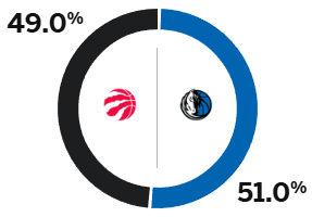ในบรรดาพวกเขา Mavericks มีอัตราการชนะ 51% และ Raptors มีอัตราการชนะ 49%